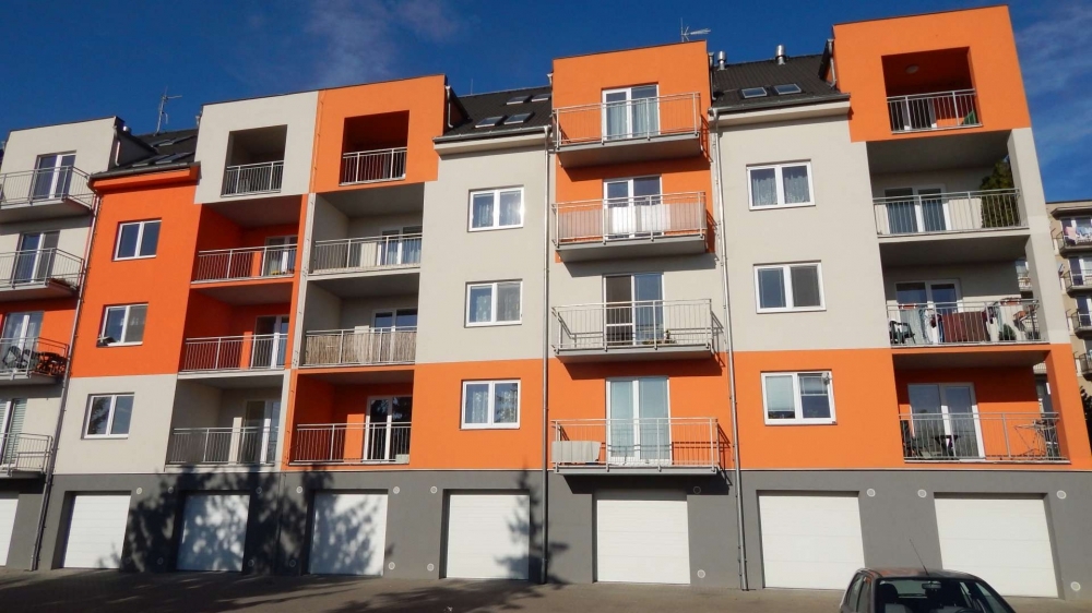 Majitelé bytů mají možnost dokoupit si i garážové stání, v každém bytovém domě je v suterénu 5 samostatných garáží